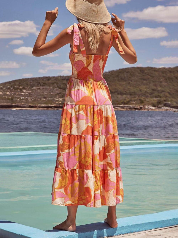 Stay stylish and comfortable in the sleeveless, pleated stretch bust-print cami dress “Sea Charm” by BoiiLife®.