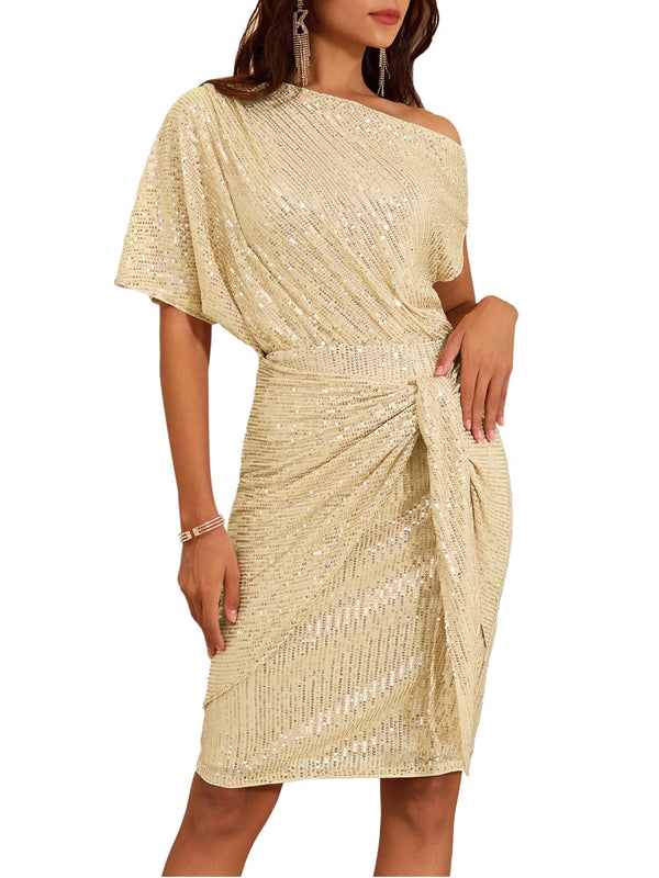 Our Women's One-Shoulder Ruched Cocktail Bodycon Dress is designed to enhance your curves and highlight your feminine charm. The ruched detailing adds a touch of elegance, while the one-shoulder neckline adds a trendy and fashionable element to the dress. The sequin material with comfy lining creates a shiny effect, makes you stand out on any occasion and shows your charming, perfect for any party.