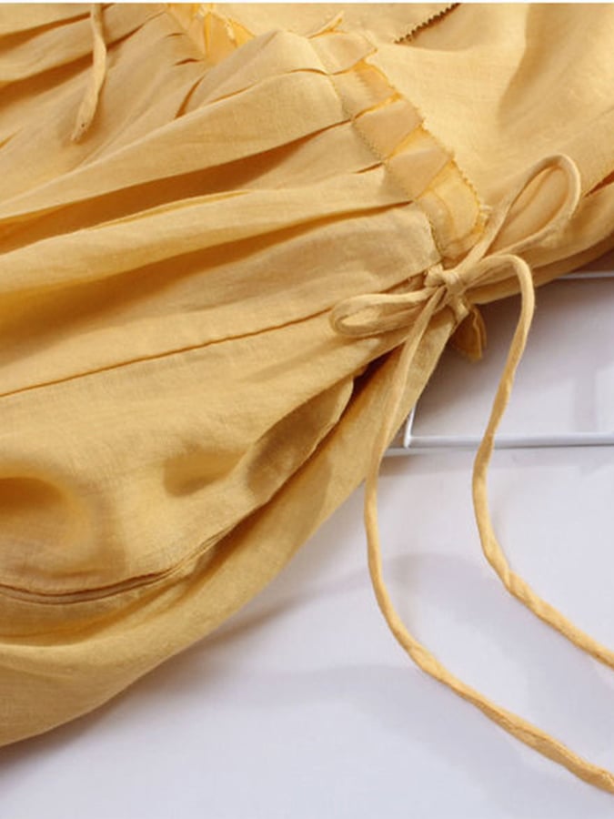 Medium Sleeved Cotton Linen Loose Lace Up Large Swing Dress