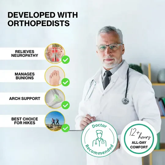 Orthopedic insole design, enhanced arch support, helps reduce foot fatigue, improve posture, relieve joint pain, and provide lasting comfort.