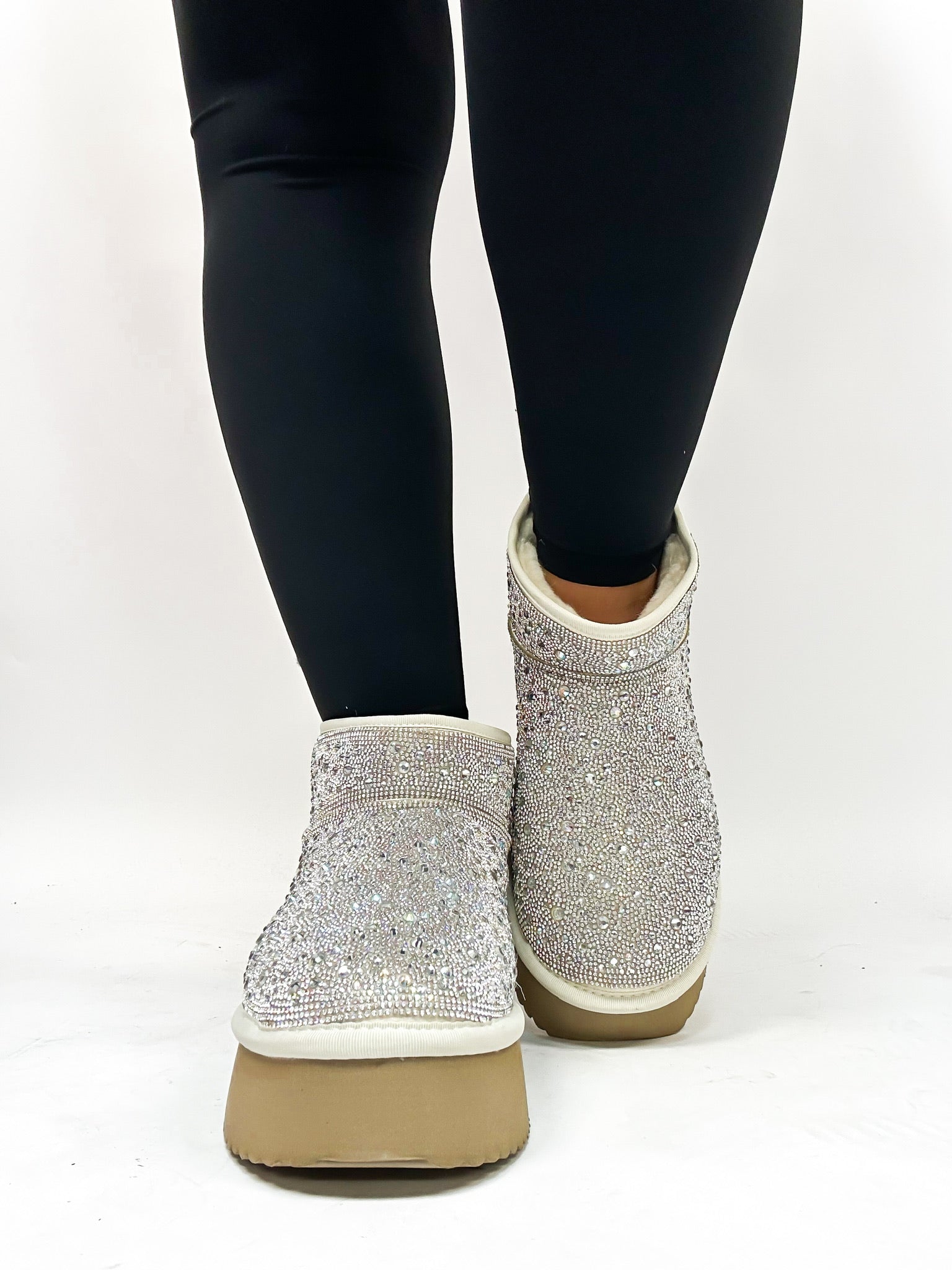 Elevate your style with Homebody shoes. These platform boots feature fun rhinestones , providing both fashion and function. Step confidently with added height and add a touch of elegance to any outfit.