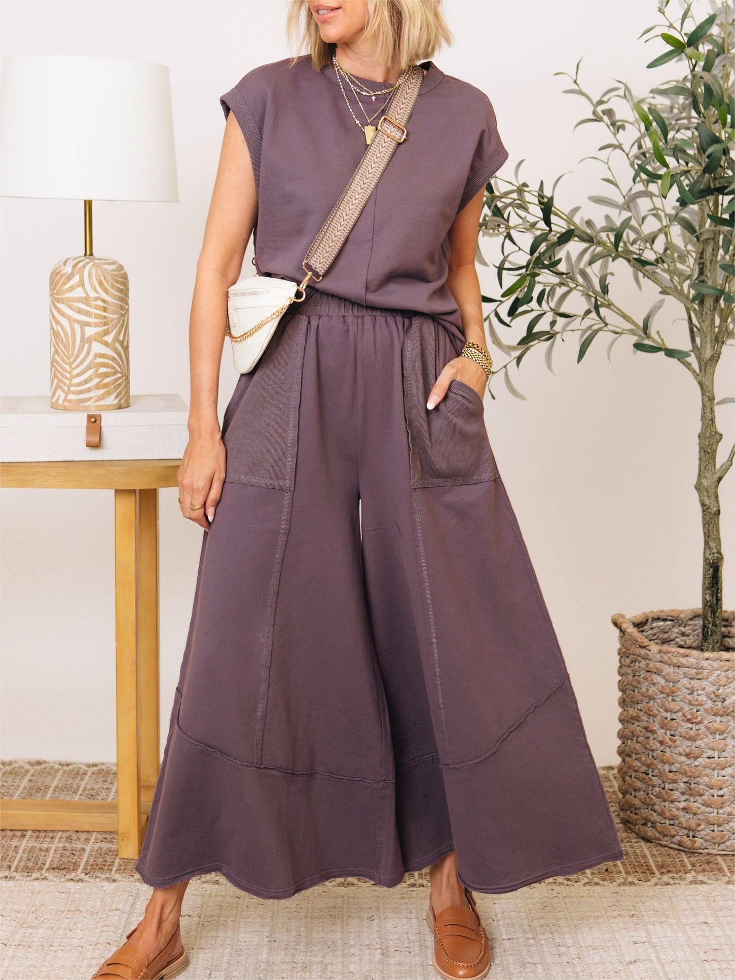 Clean Lines Top & Wide Leg Pants Set (Buy 2 Free Shipping)