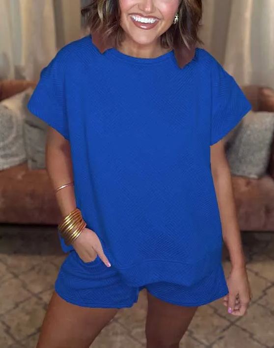 2024 New Women's Solid Textured Drawstring Shorts Set (Buy 2 Free Shipping)