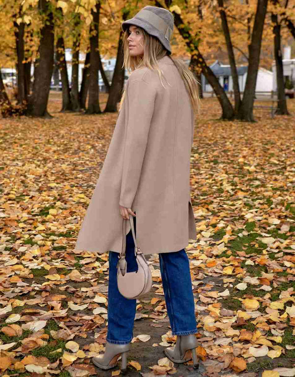 • Product Details :Wide collar,Open front, Inserted side pockets. Split hem. Knit fabric provides flexibility. Not lined.